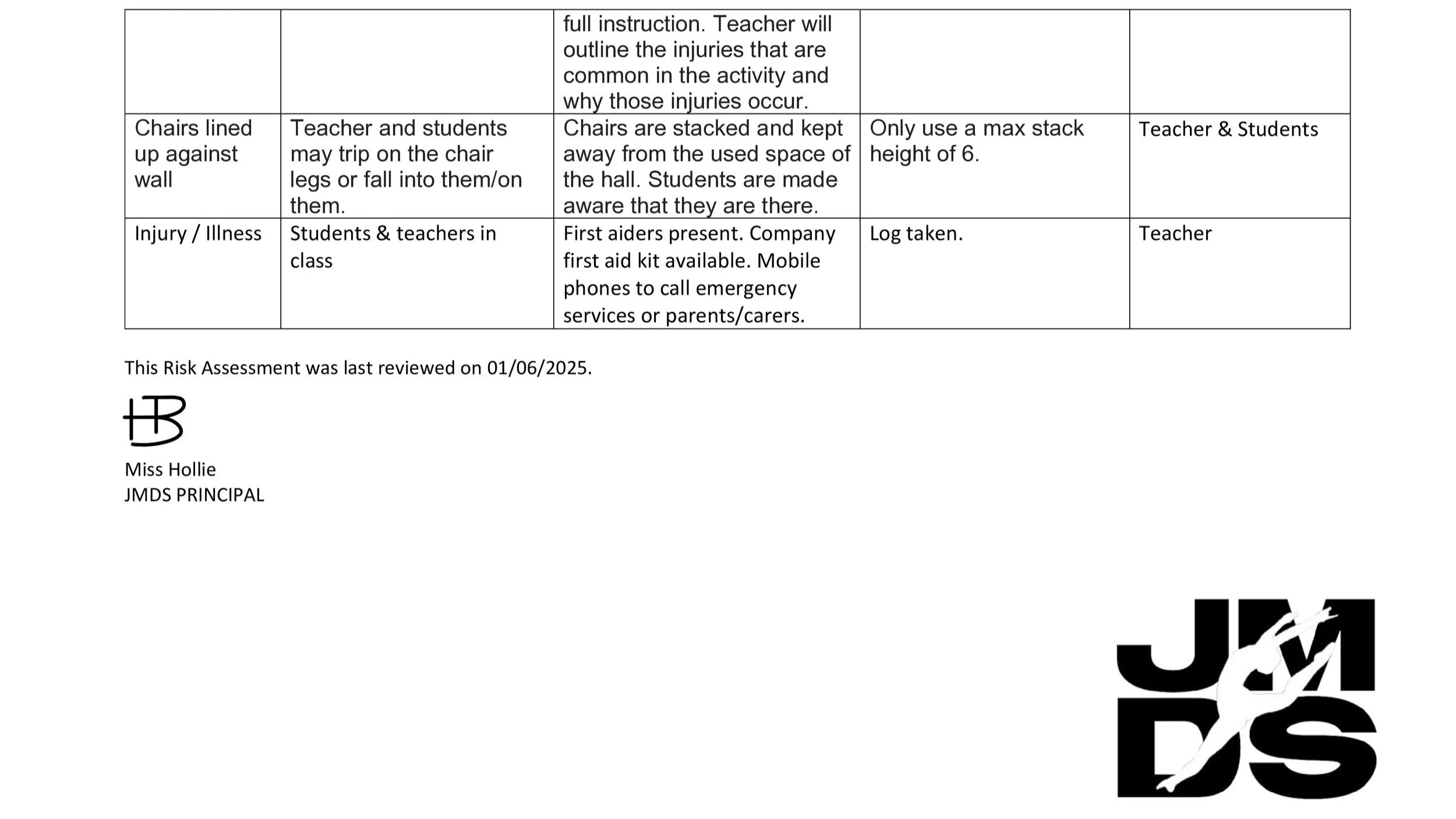 JMDS Health & Safety Policy