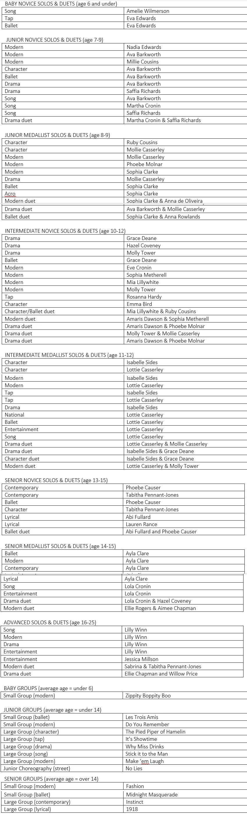 Any student can enter the Awards. In the first instance they should speak to Miss Jayne, who'll be able to advise on which teacher could choreograph an item for them. (Don't forget that this'll mean extra rehearsal and choreography costs.)